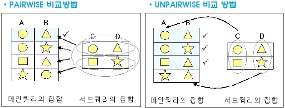 □ 다중컬럼 서브쿼리 : PAIRWISE, UNPAIRWISE 서브쿼리 비교